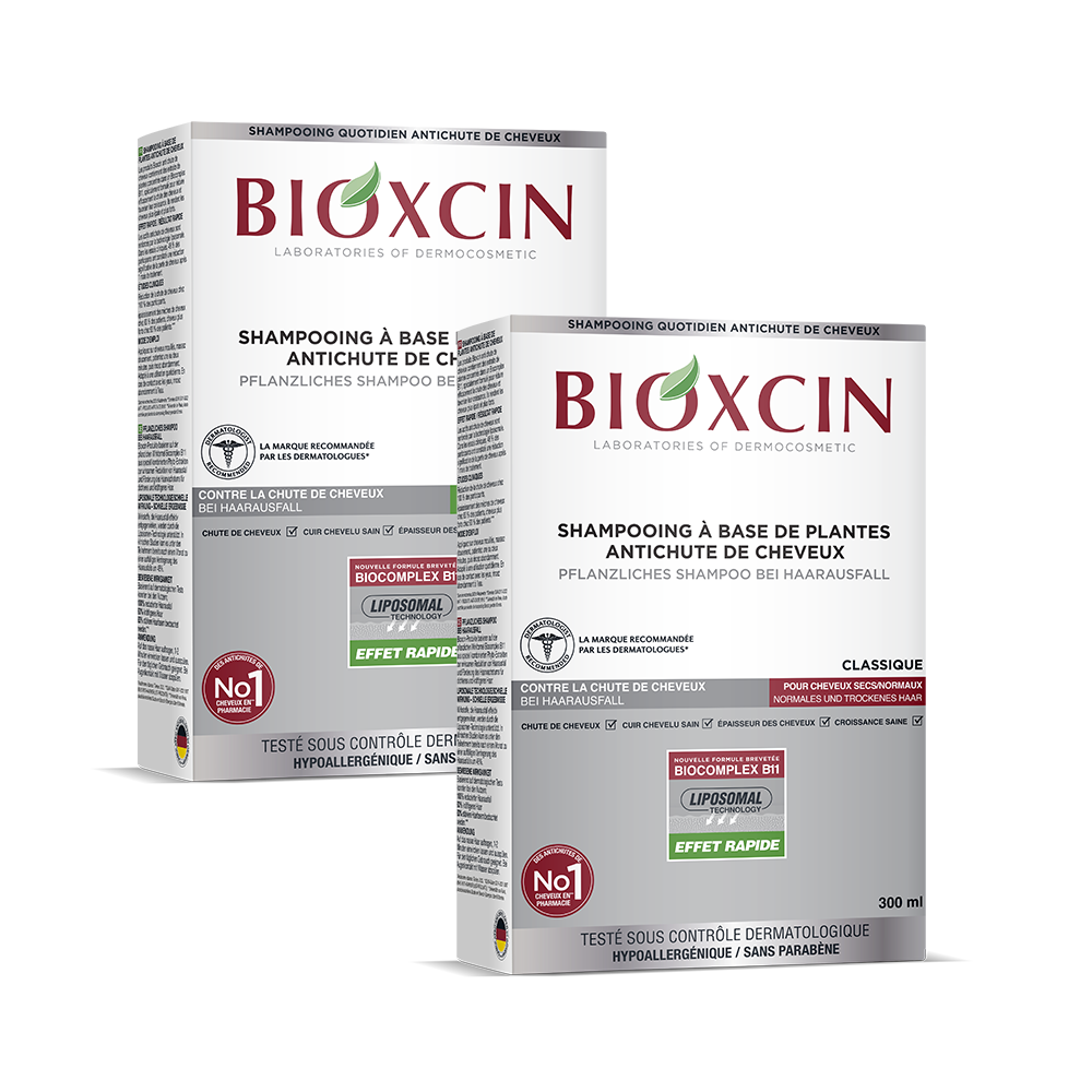 Bioxcin Classic Zestaw szamponów do włosów z tendencją do wypadania 2×300 ml to zestaw dwóch ziołowych szamponów, stworzonych do pielęgnacji różnych rodzajów włosów: suchych, normalnych, przetłuszczających się, osłabionych i z tendencją do wypadania. Dzięki formule opartej na BioComplex B11, oba szampony wzmacniają cebulki włosów, przeciwdziałają wypadaniu i stymulują wzrost nowych, mocnych włosów.