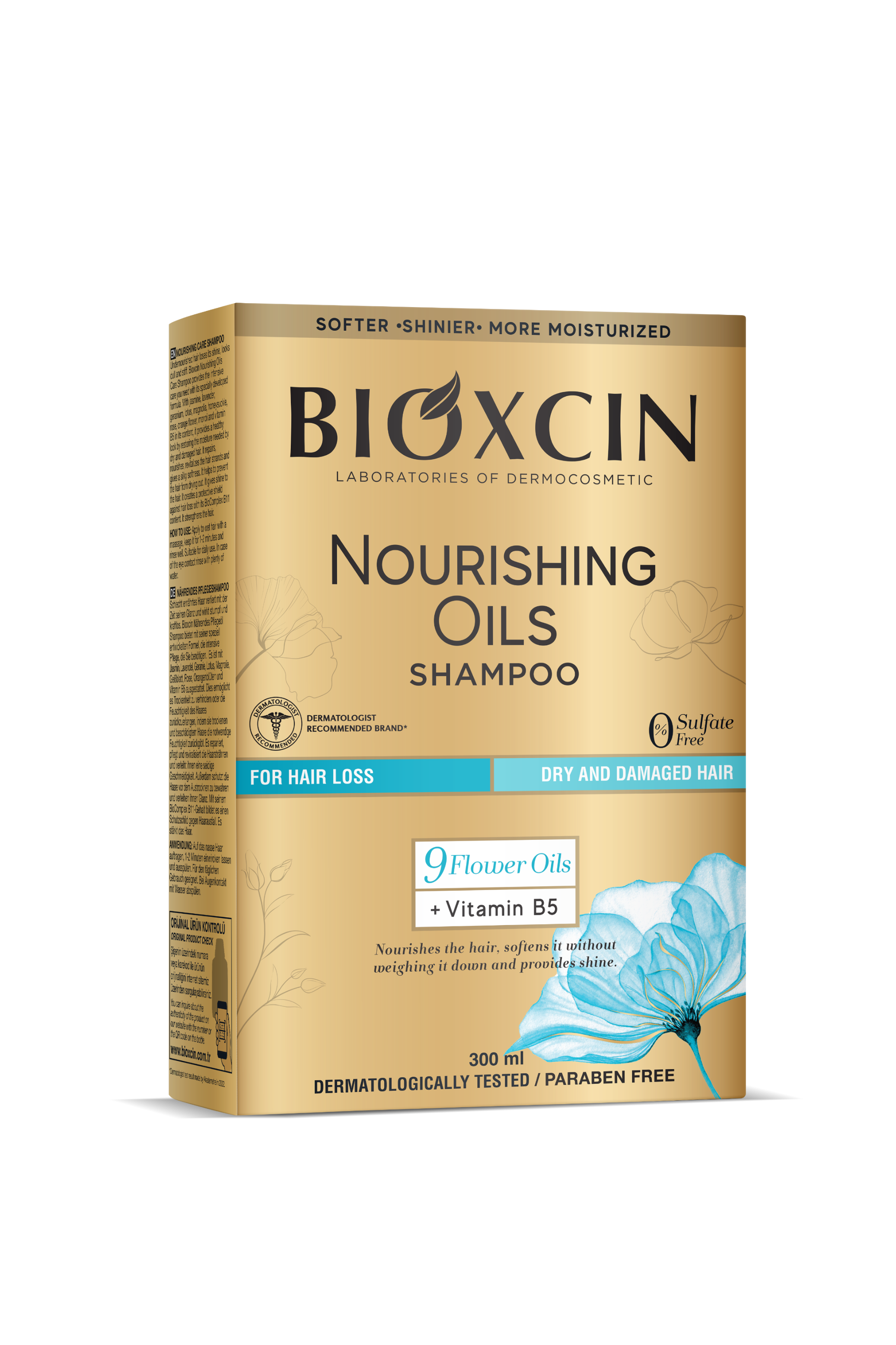 Włosy suche i niedożywione tracą blask, wyglądają na matowe i zniszczone. Szampon Bioxcin Nourishing Oils zapewnia intensywną pielęgnację, której potrzebujesz, dzięki specjalnie opracowanej formule. Dzięki zawartości jaśminu, lawendy, geranium, lotosu, magnolii, wiciokrzewu, róży, kwiatu pomarańczy, monoi i witaminy B5 zapewnia zdrowy wygląd, przywracając wilgoć potrzebną suchym i zniszczonym włosom. Naprawia, odżywia, rewitalizuje pasma włosów i nadaje jedwabistą miękkość. Pomaga zapobiegać wysuszaniu włosów. Nadaje włosom połysk.